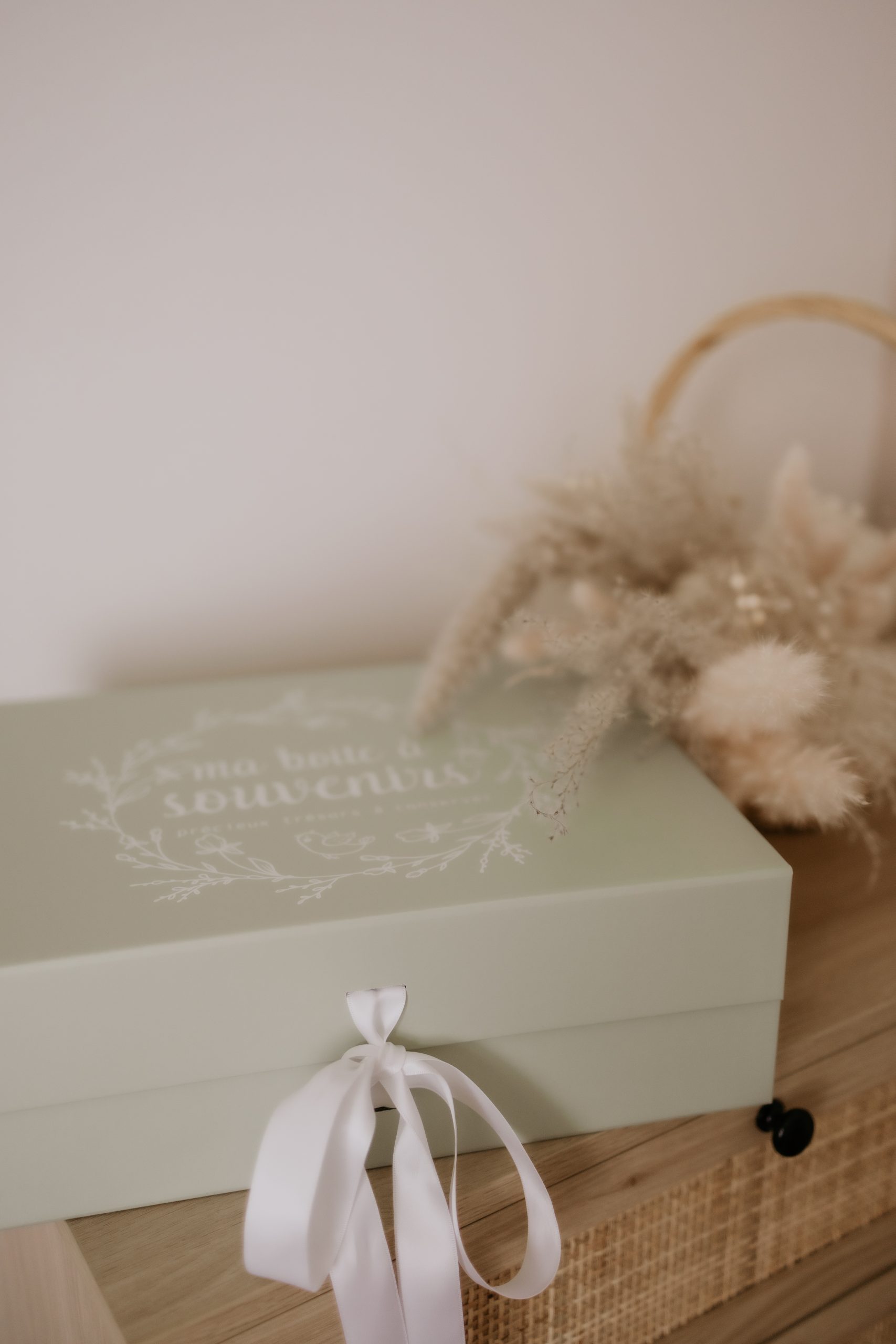 Chaque boite vient avec 2 enveloppes souvenirs et 1 pochette de coton ‘mes petits souvenirs’.